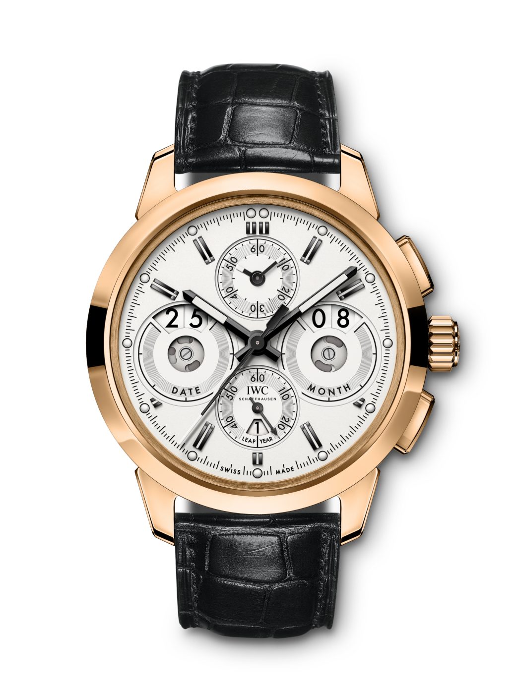- ساعة Ingenieur Perpetual Calendar Date-Month من IWC، مصنوعة بعلبة من الذهب الأحمر عيار 18 قيراطاً قرص مطلي بالفّضّة، عقارب سوداء و حزام من جلد التمساح باللون الأسود. يعرض التقويم الدائم الرقمي اليوم والشهر بأرقام كبيرة. وهي تتعرف أوتوماتيكياً على اختلاف طول الأشهر، بما في ذلك اليوم الكبيس الذي يحدث كّلّ أربع سنوات،كما يسهل جّدّاً التعديل بواسطة التاج. وتضّمّ أيضا معايرة 89801 المصّنّعة في مشاغل الدار وظيفة الكرونوغراف